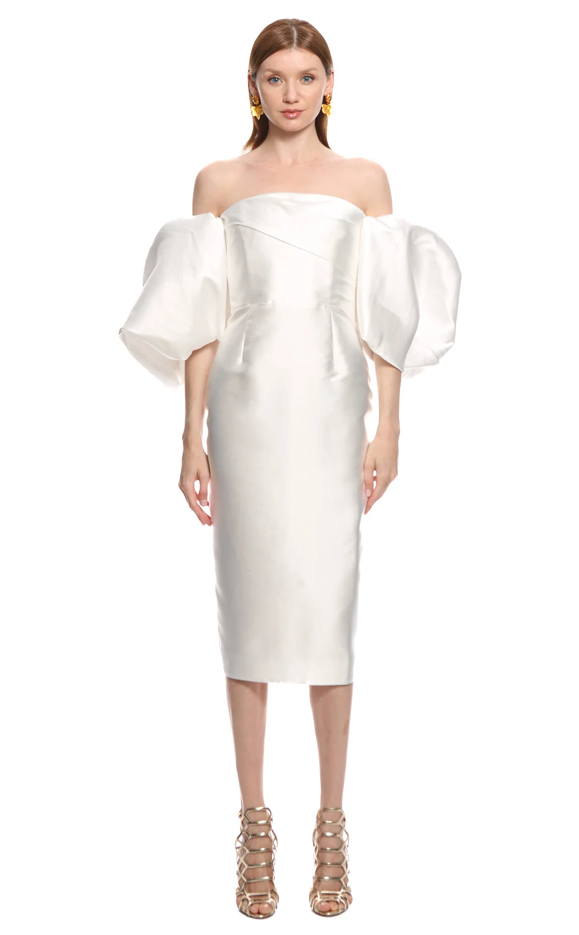 Solace London Krem Rengi Karpuz Kol Straplez Yaka Maksi Boy Elbise