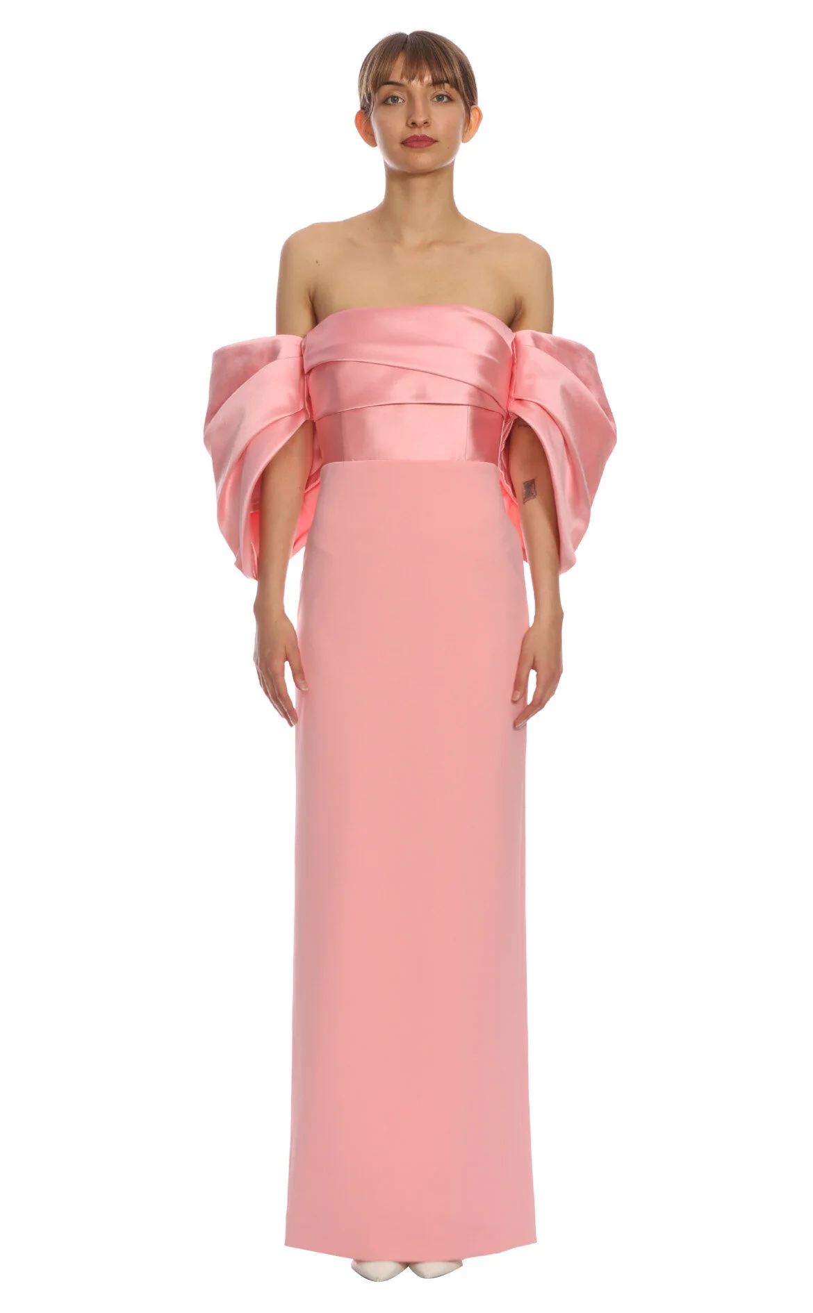 Solace London Pembe Karpuz Kol Straplez Yaka Kadın Uzun Elbise