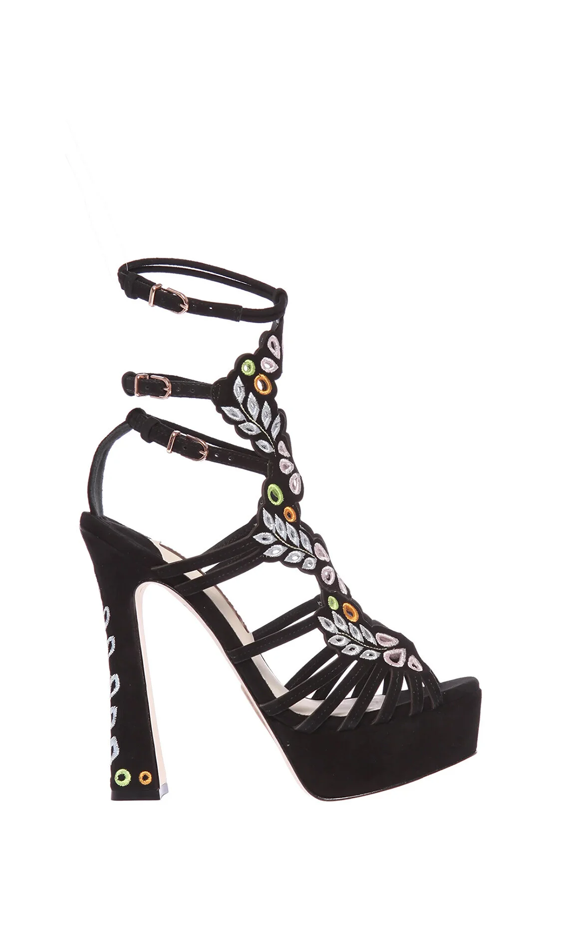 Sophia Webster Siyah Nakış Detaylı Süet Topuklu Ayakkabı