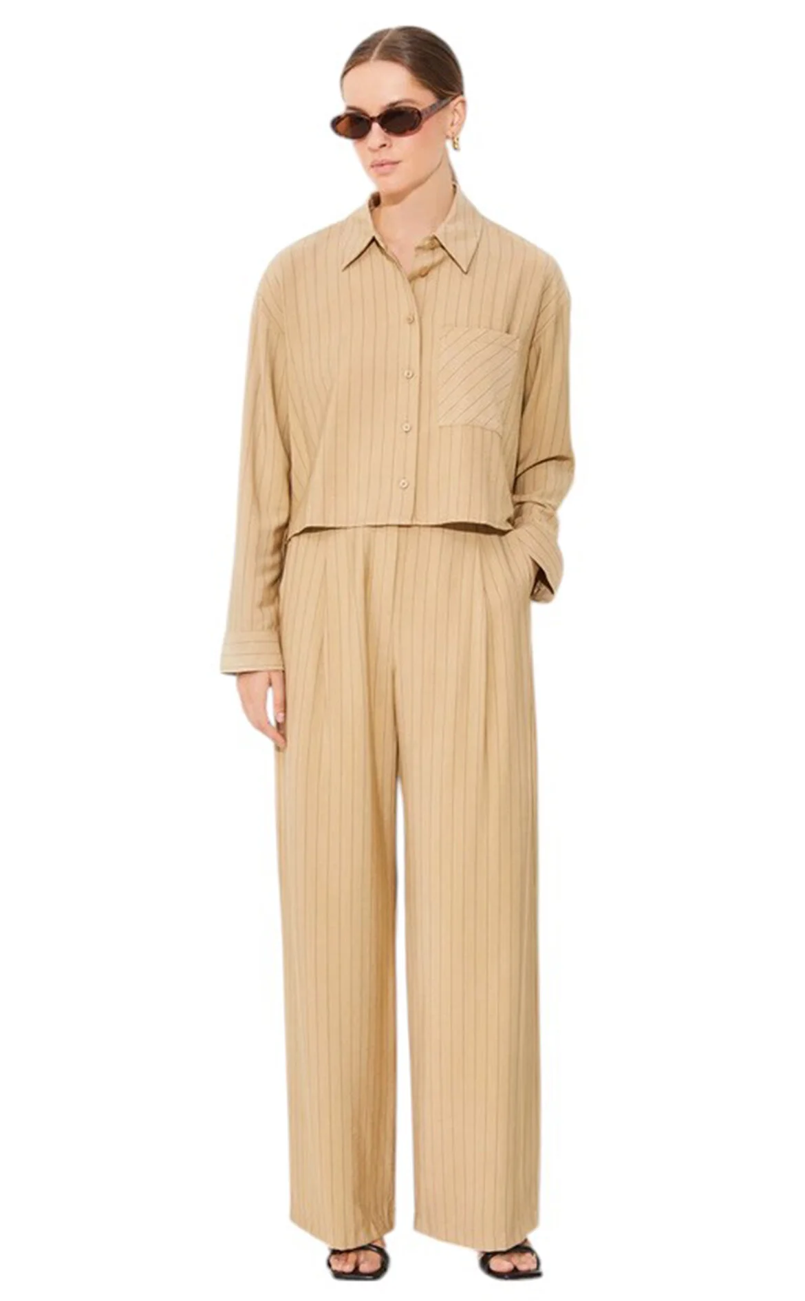 3. Bej Çizgili Uzun Kol Organik Pamuk Gömlek
