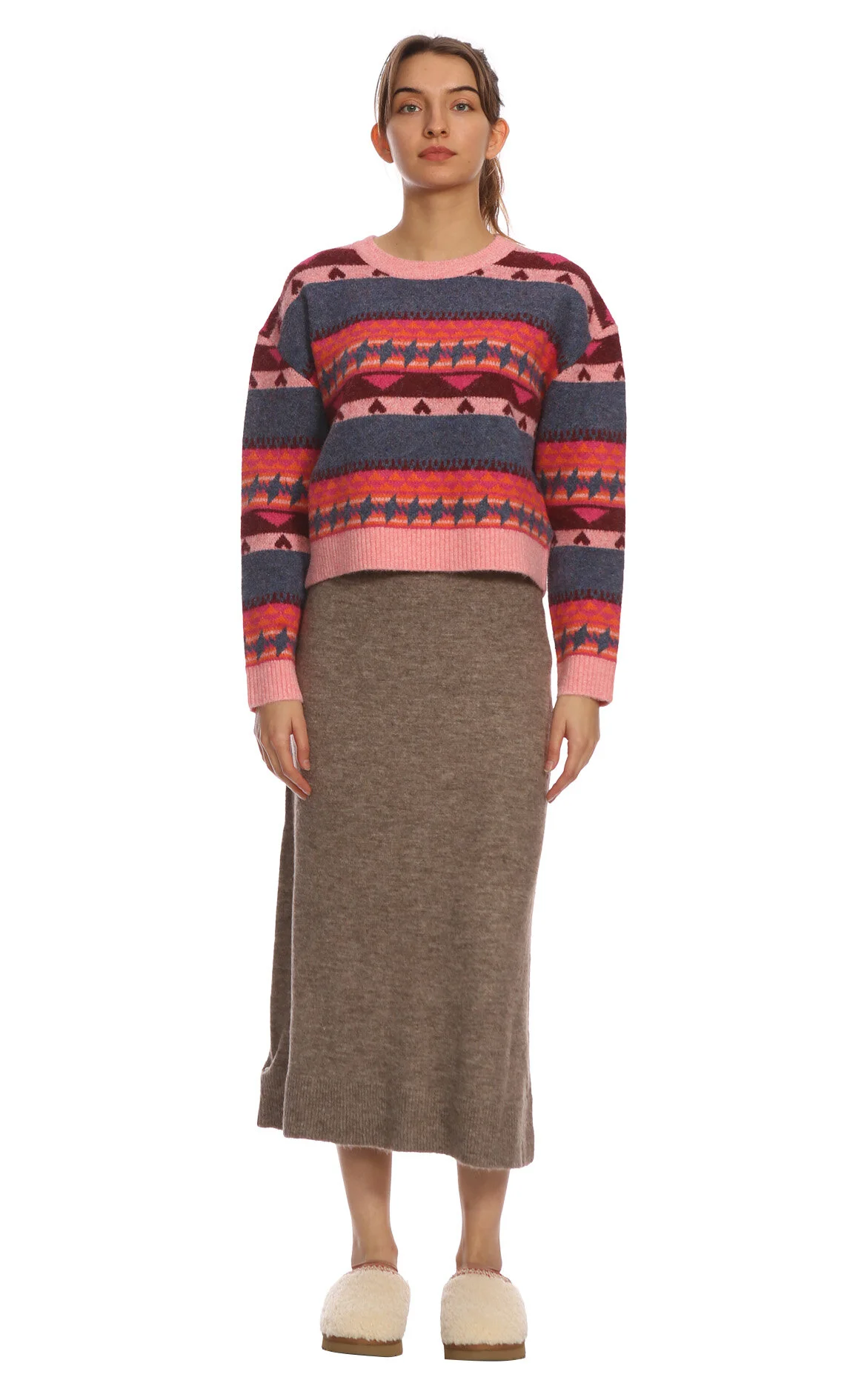 Suncoo Mercan Rengi Karışık Desenli Uzun Kol Bisiklet Yaka Yünlü Kadın Kazak