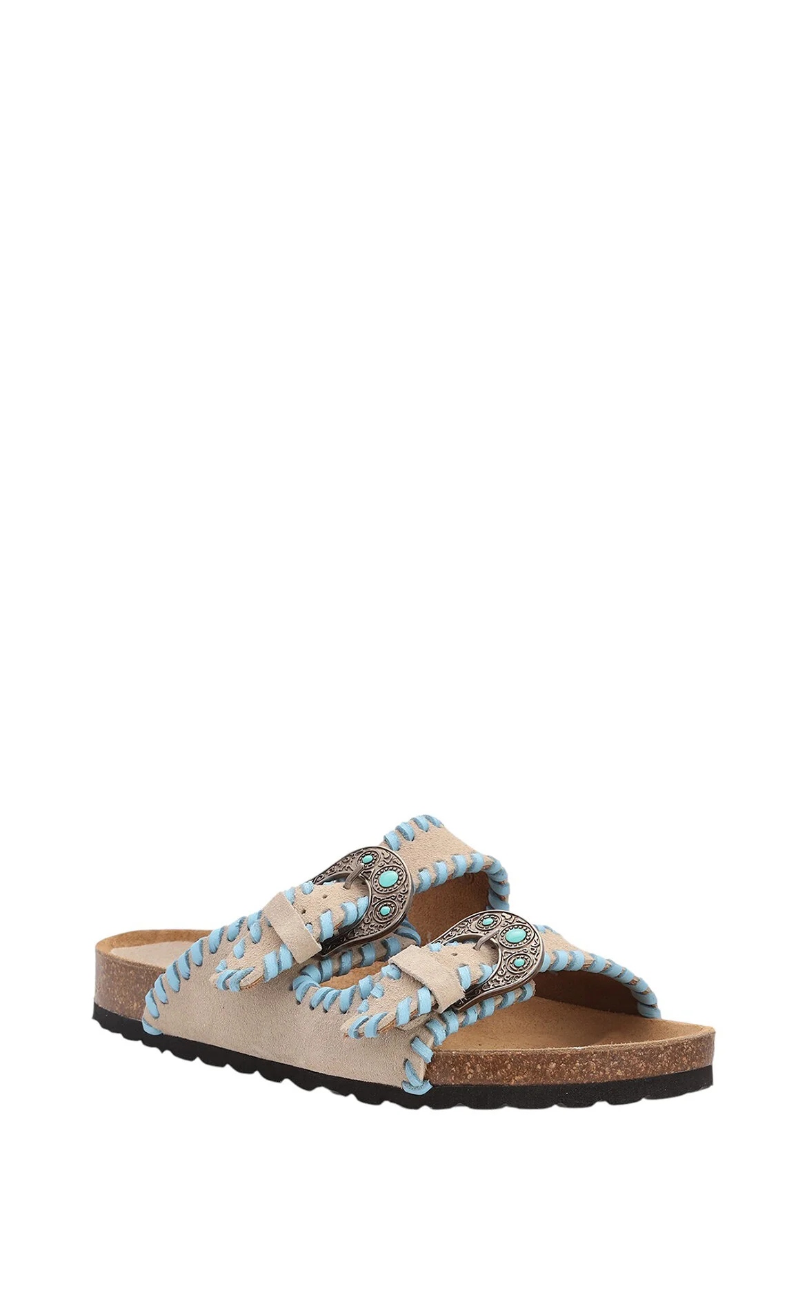 Taji Krem Süet Buckle Beat Boncuk İşlemeli Kadın Terlik