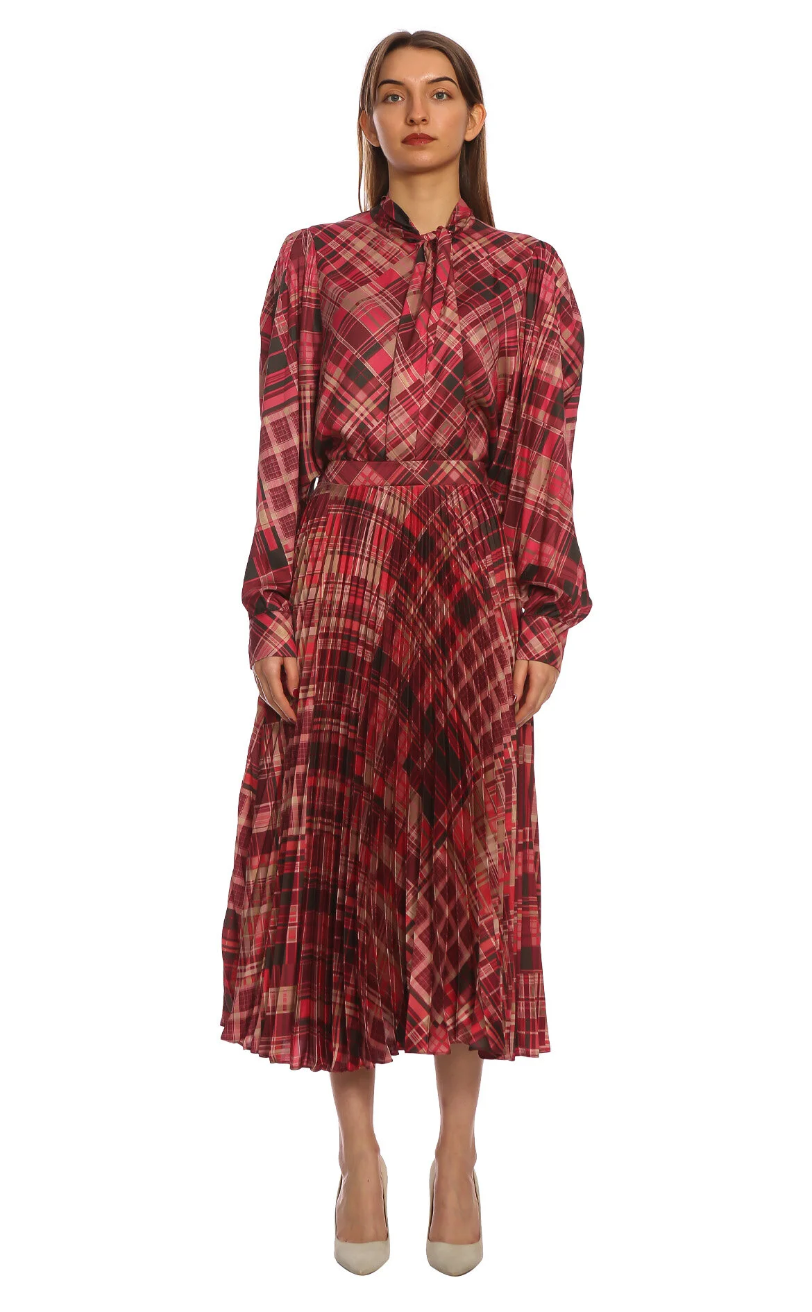3. Çok Renkli Ekose Desenli Normal Bel Midi Etek