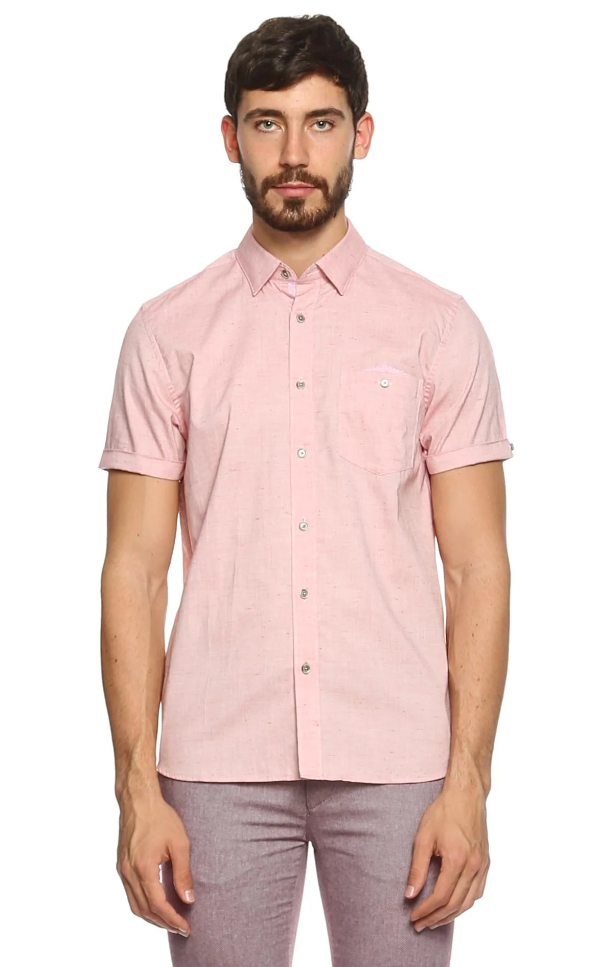 Ted Baker Pembe Kısa Kollu Gömlek Yaka Pamuk Gömlek