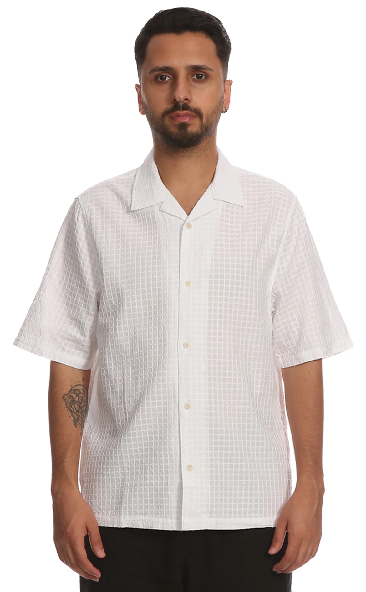 5. Beyaz Kare Desenli Kısa Kollu Pamuk Gömlek