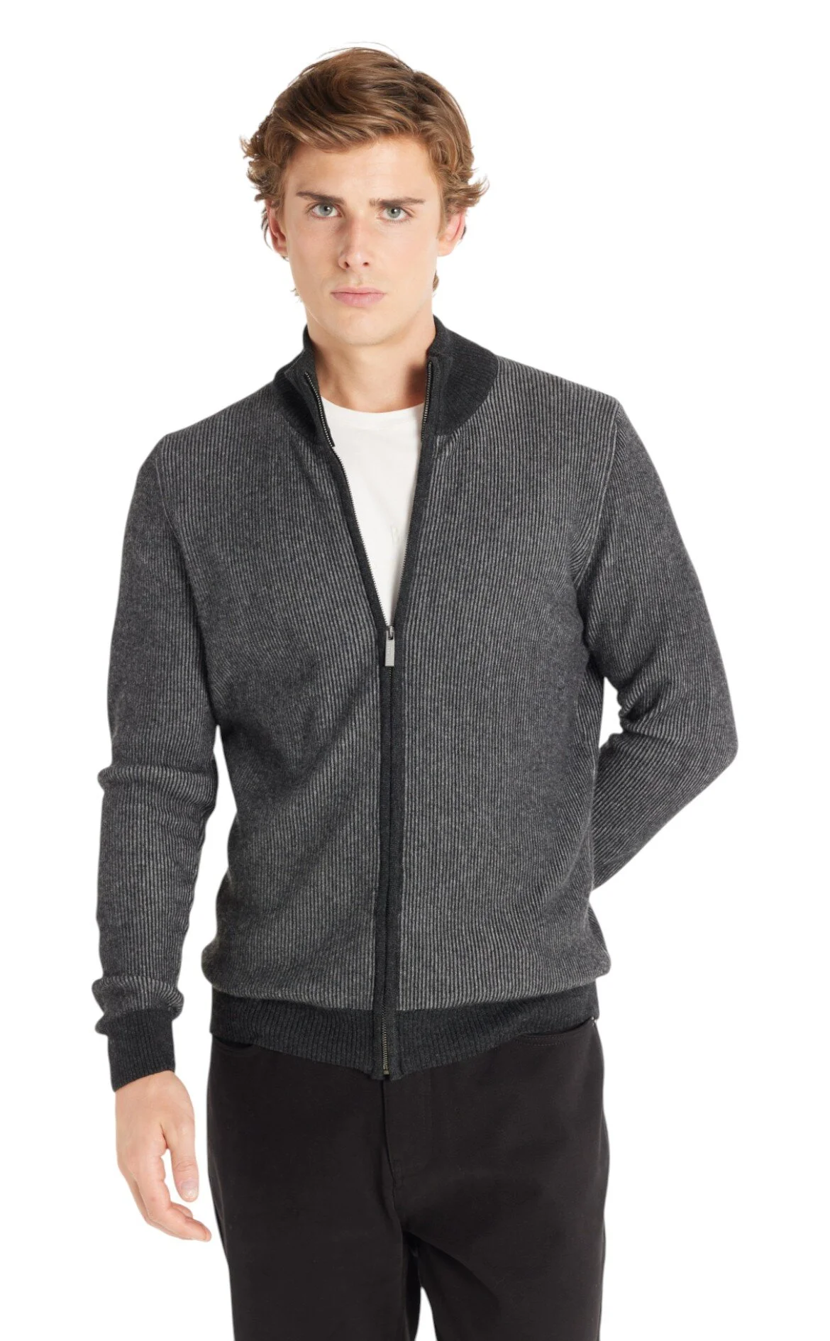 5. Antrasit Fermuarlı Dik Yaka Yünlü Hırka