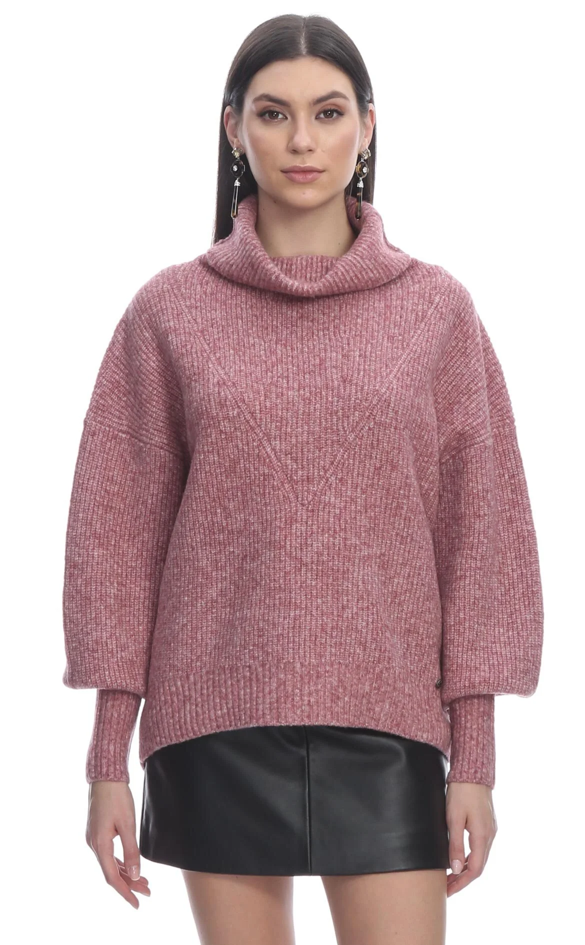 3. Pembe Örgülü Karpuz Kol Yarım Balıkçı Yaka Yünlü Kadın Kazak