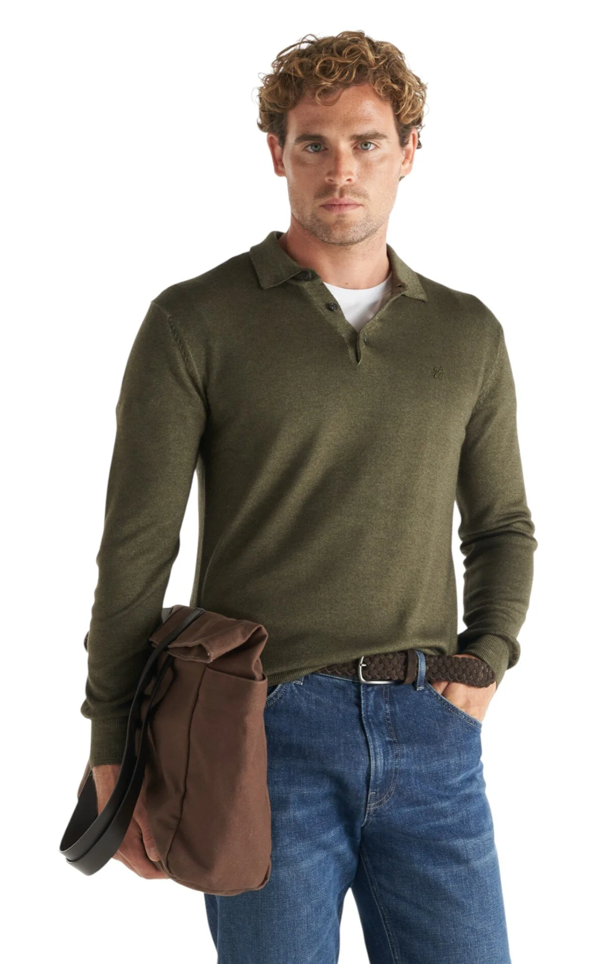 5. Haki Uzun Kol Gömlek Yaka Pamuklu Erkek Kazak
