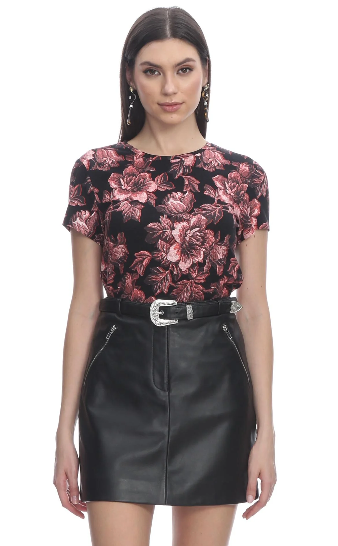 Ted Baker Çok Renkli Çiçek Desenli Kısa Kollu Sıfır Yaka Pamuk Bluz