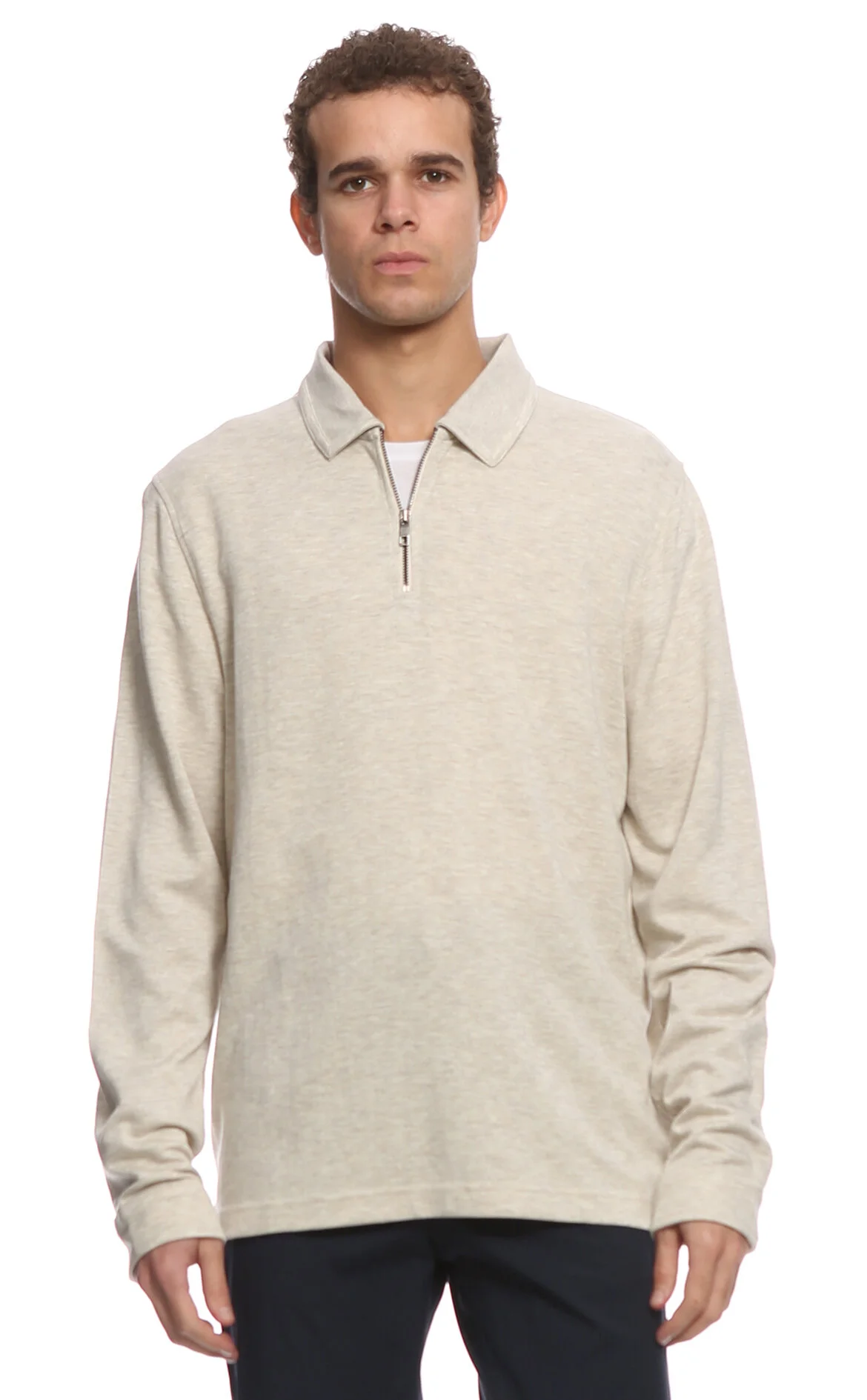 5. Bej Uzun Kol Gömlek Yaka Erkek T-Shirt