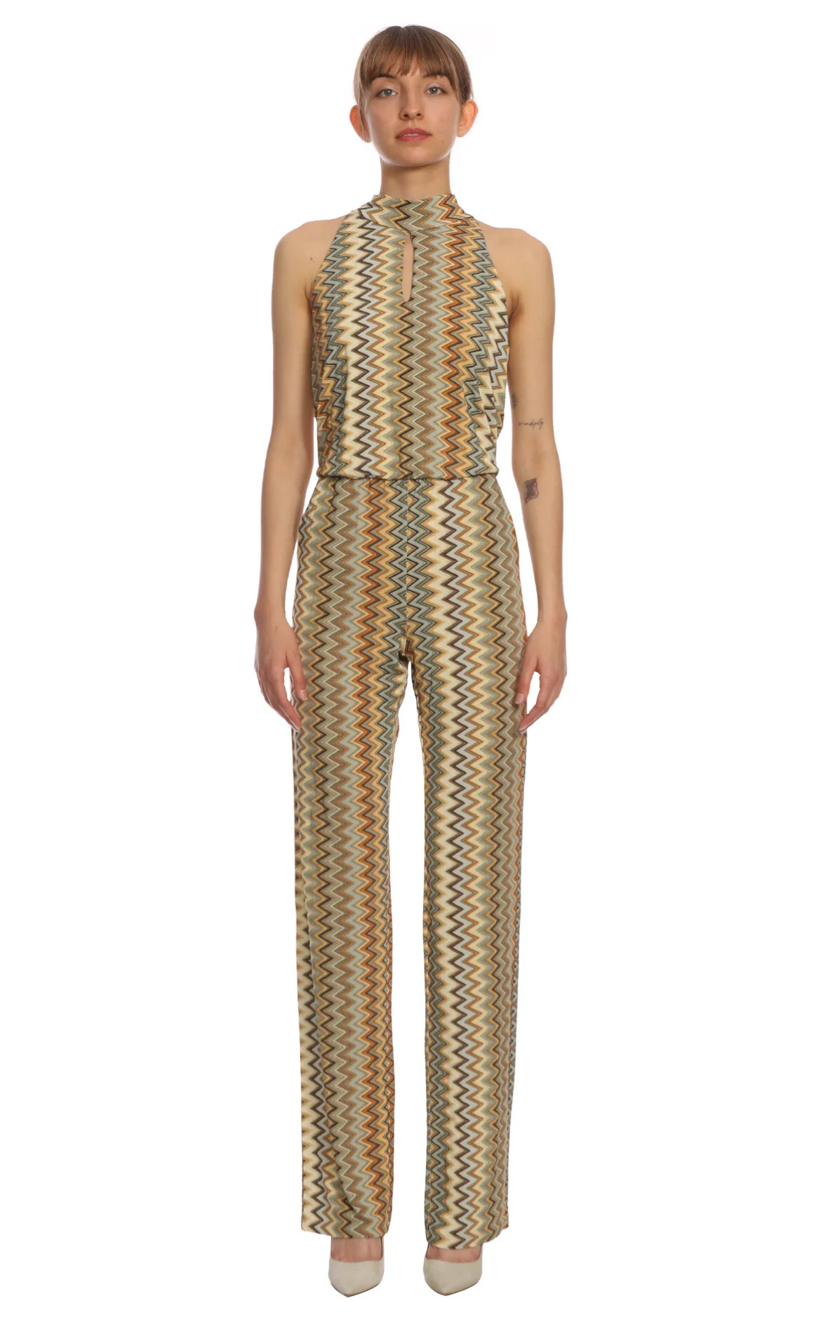 The Abito Zikzak Desenli Kolsuz Bol Paça Dik Yaka Pamuk Tulum