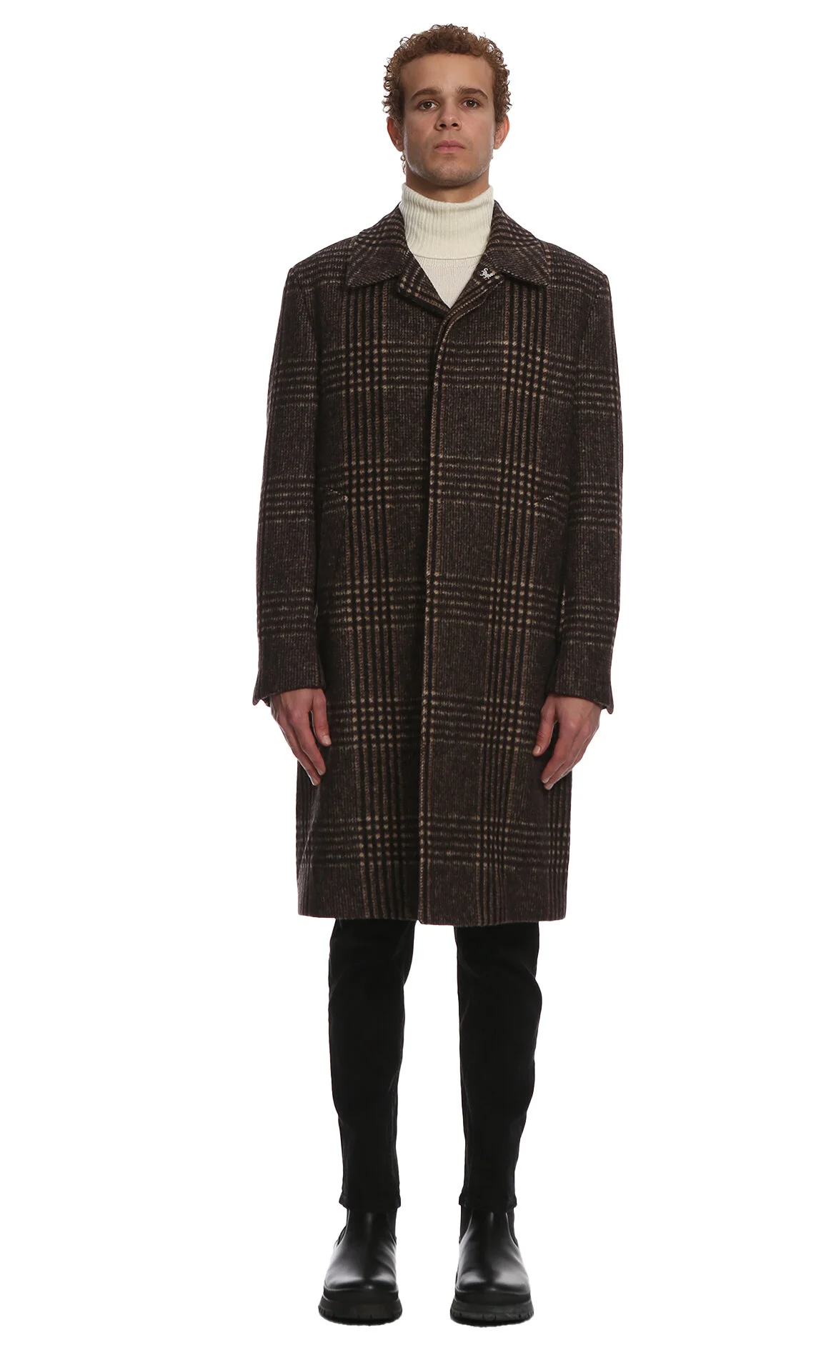 5. Kahverengi Karma Desenli Kırlangıç Yakalı Yünlü Kaban