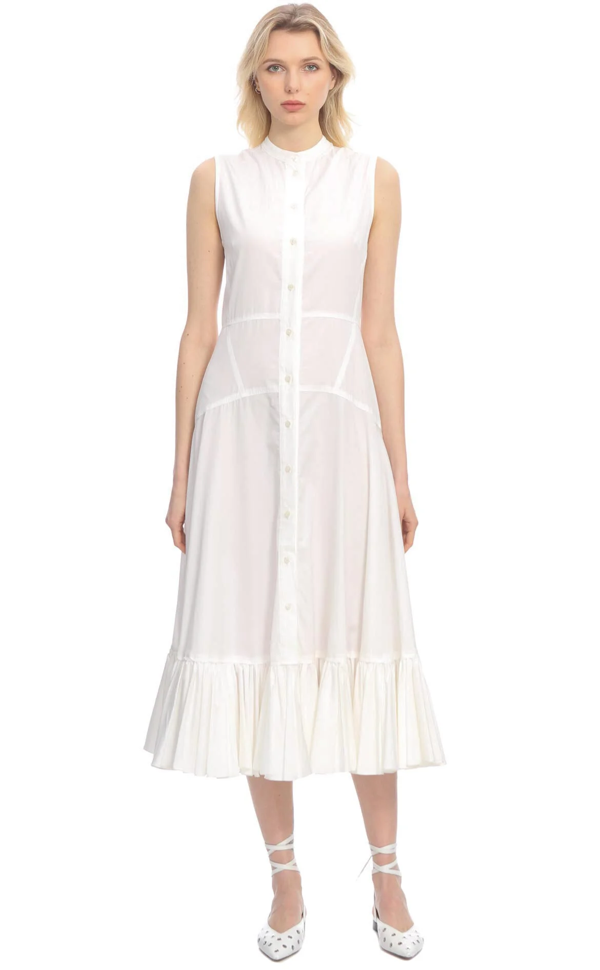3. Beyaz Kolsuz Hakim Yaka Pamuk Midi Boy Elbise