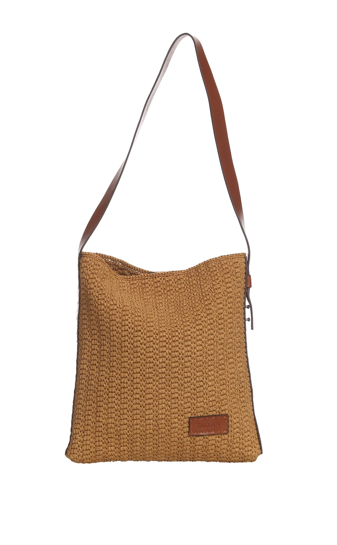 Tullaa Camel Hasır Örgü Dokulu Çanta