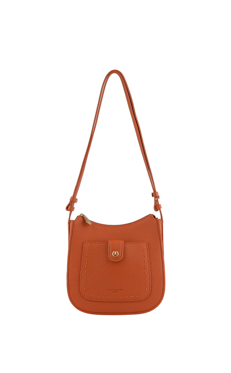 Omuz askılı, düz desenli, 3 iç cepli, fermuar kapamalı, turuncu Pourchet çanta