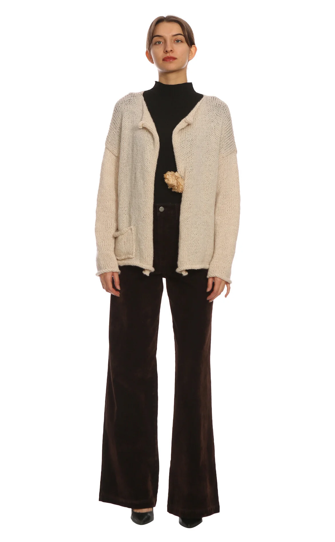 5. Ekru Çicek Detaylı Uzun Kol Triko Hırka