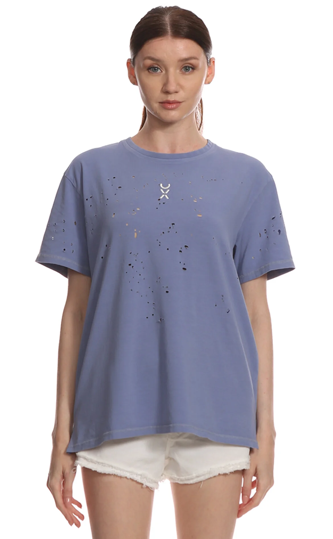 Untitled Experiment Mavi Logo Baskılı Kısa Kollu Bisiklet Yaka Pamuklu Kadın T-Shirt