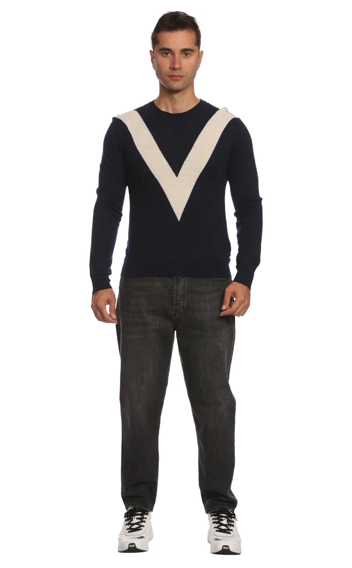 Valentino Lacivert Logo Baskılı Uzun Kol Bisiklet Yaka Erkek Kazak