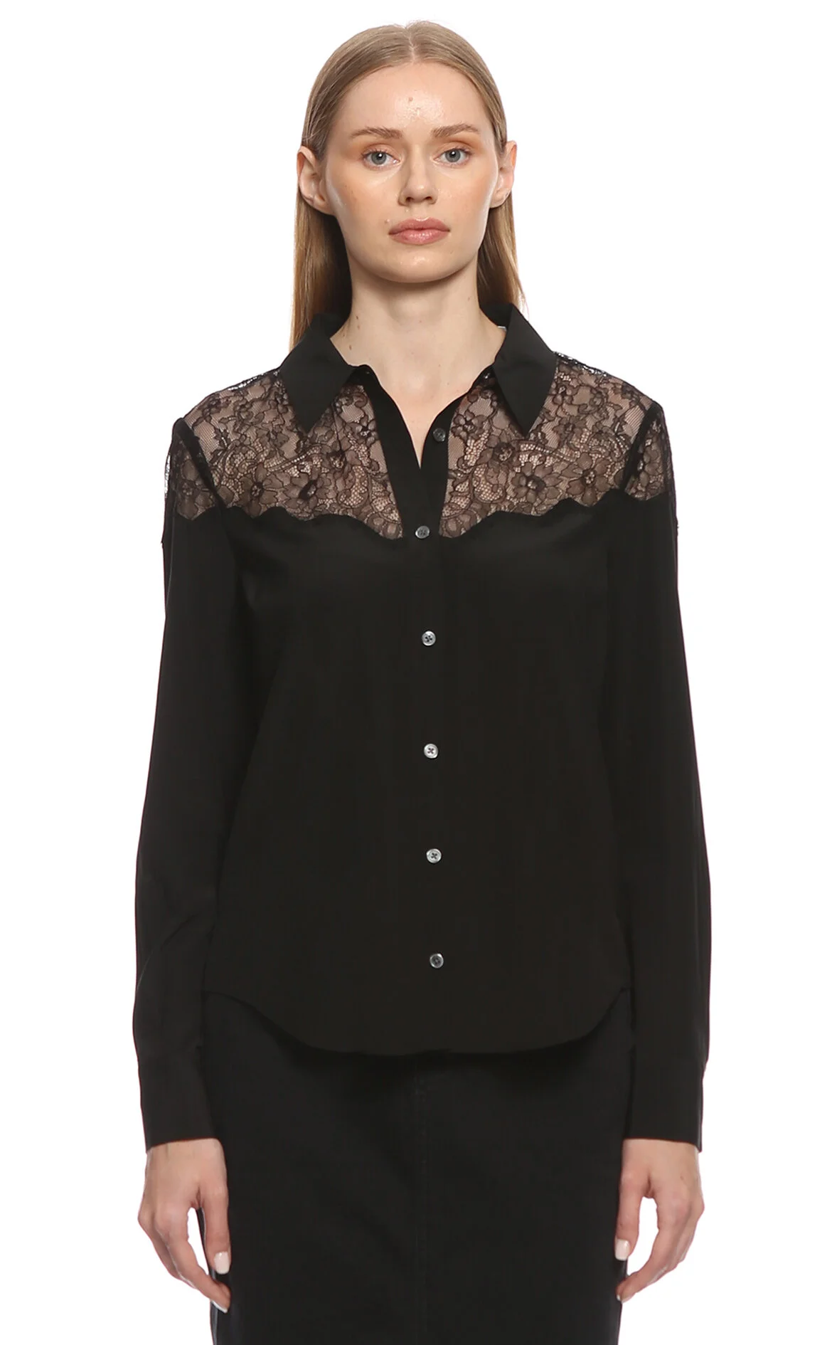5. Siyah Dantelli İpek Gömlek