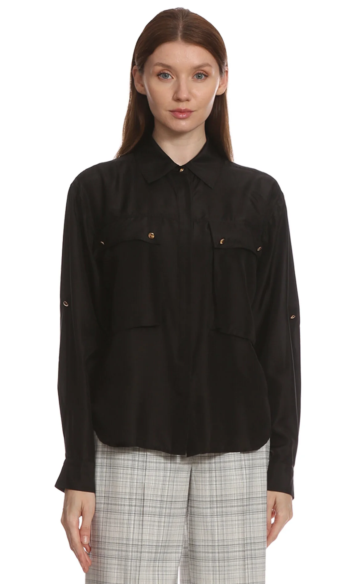 5. Siyah Uzun Kol Gömlek Yaka İpek Bluz
