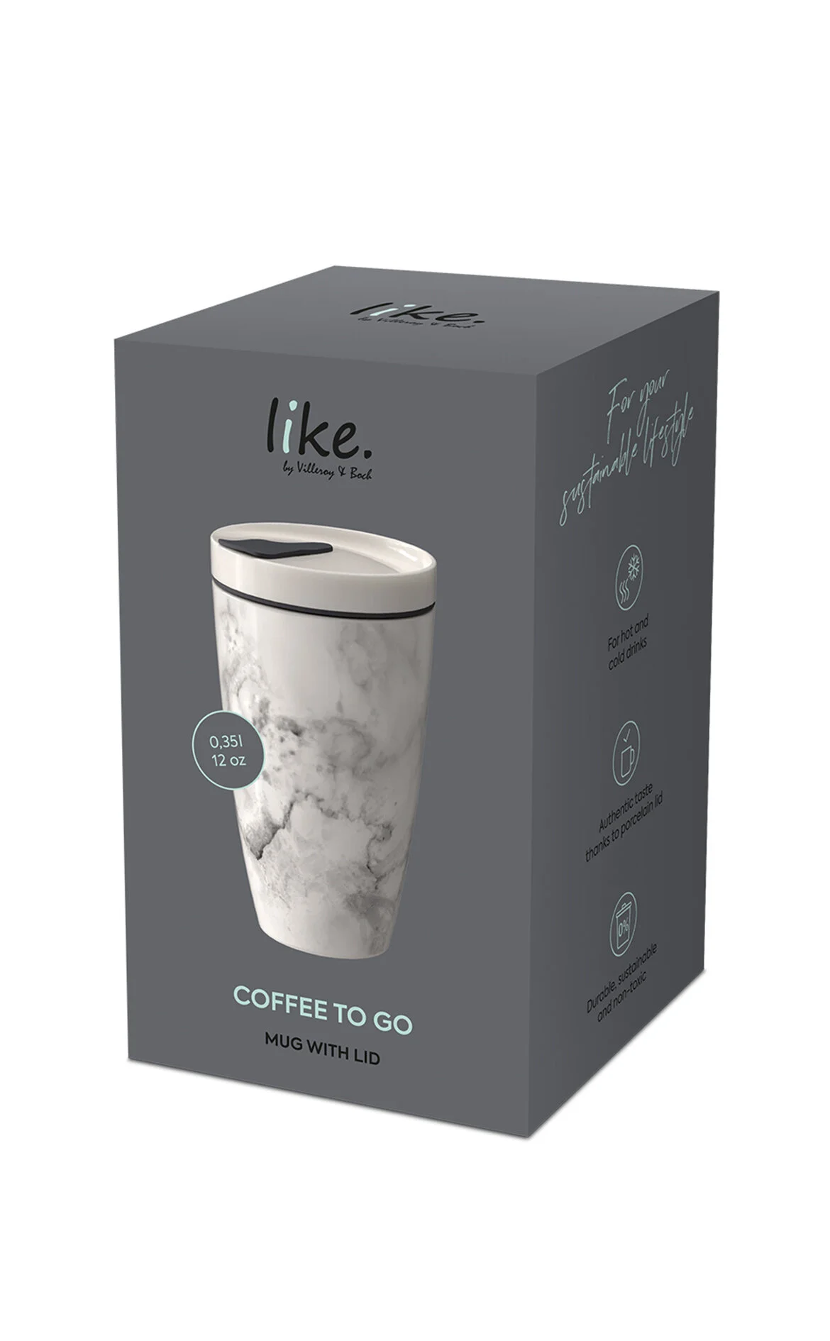 Villeroy & Boch Coffee To Go Mermer Desenli Porselen Kupa Termos Beyaz 0,35 L