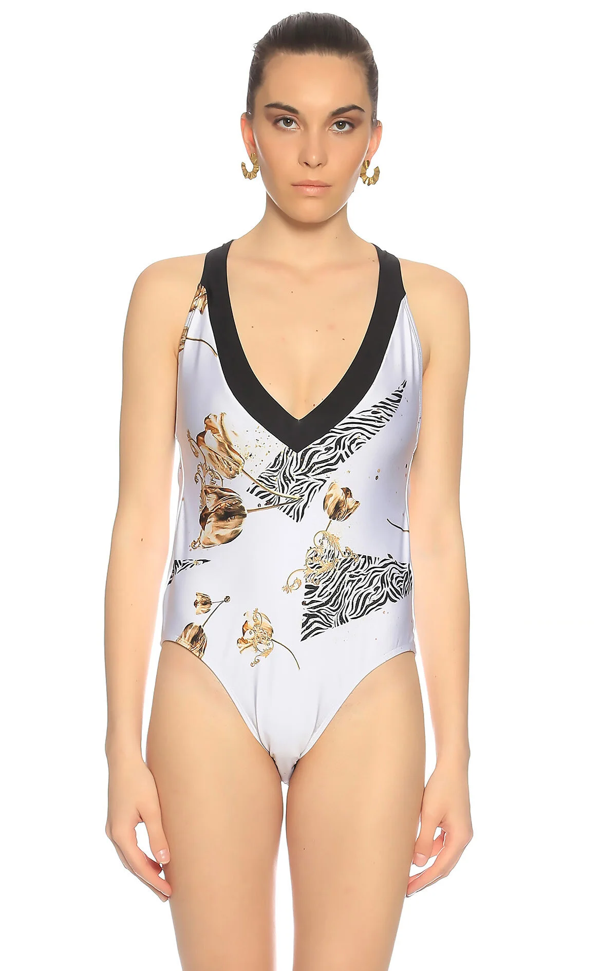 3. Çok Renkli Zebra Desenli V Yaka Mayo