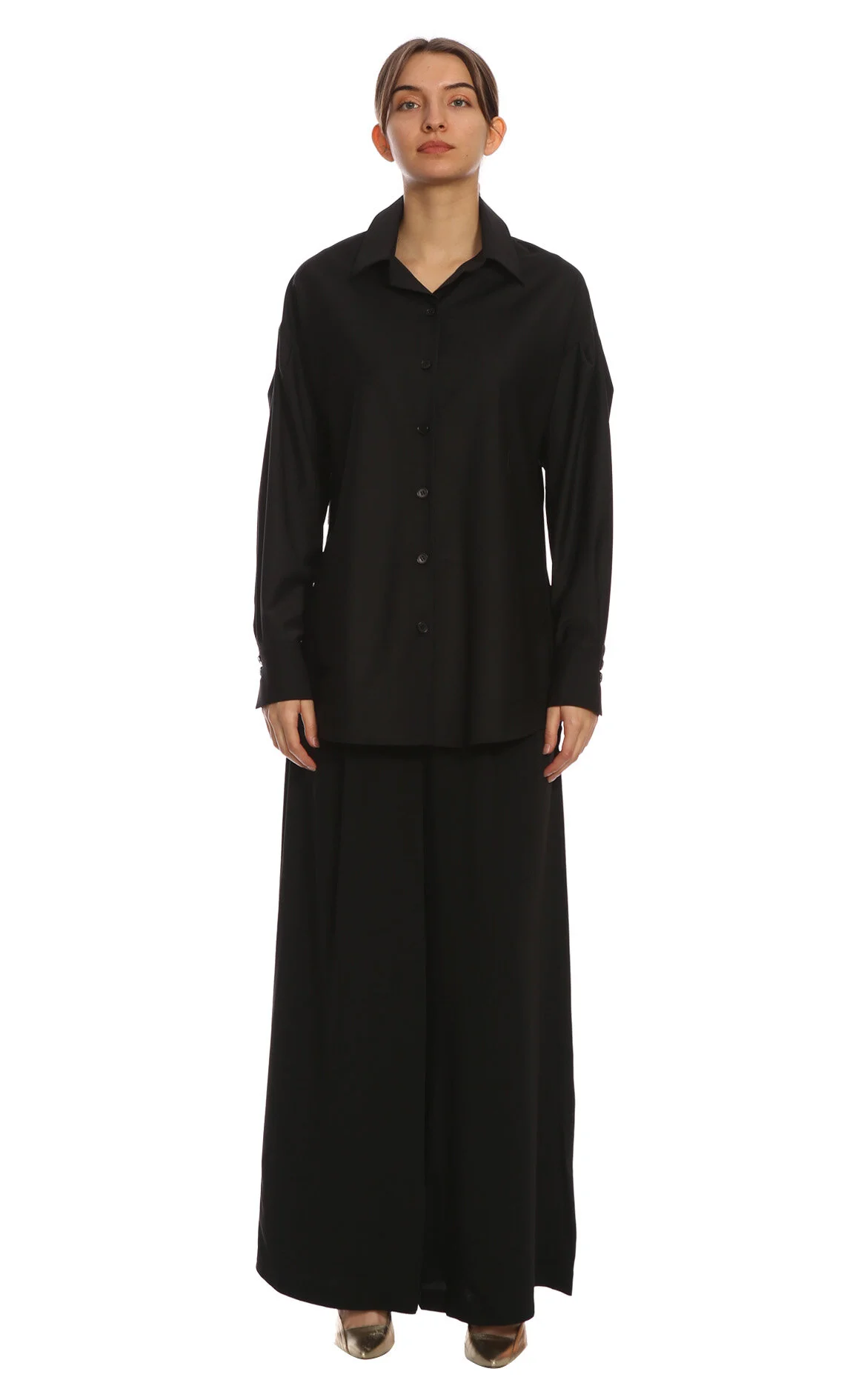 5. Siyah Uzun Kol Klasik Yaka Yünlü Gömlek