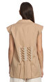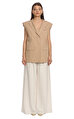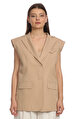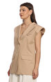 Kruvaze yakalı, sıfır kollu, düz desenli, bej What İf yelek
