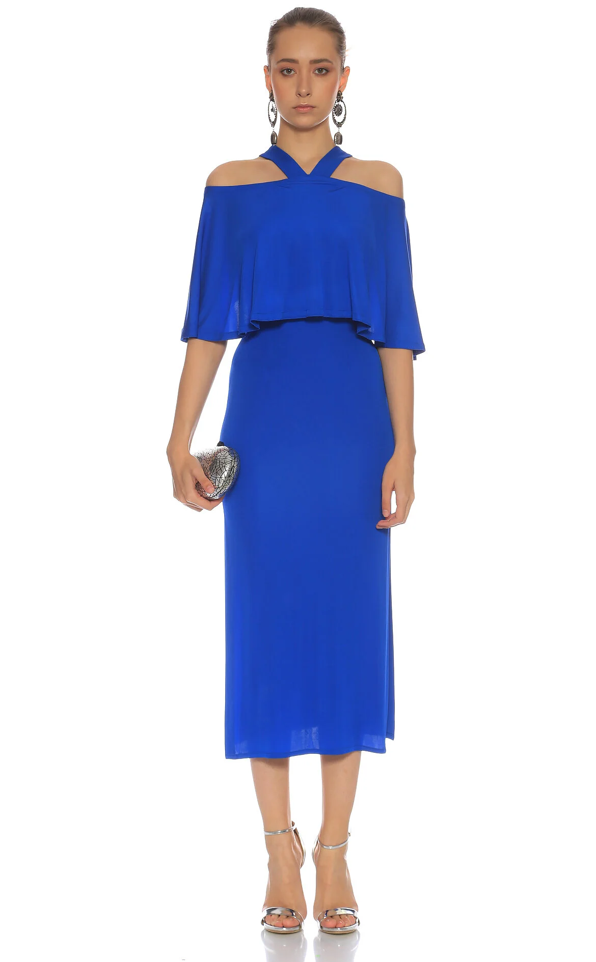 3. Mavi Pelerin Detaylı Midi Boy Elbise